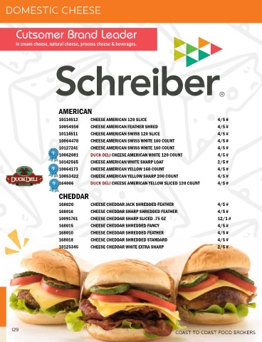 164006 DUCK DELI CHEESE AMERICAN YELLOW SLICED 120 COUNT 4/5 #