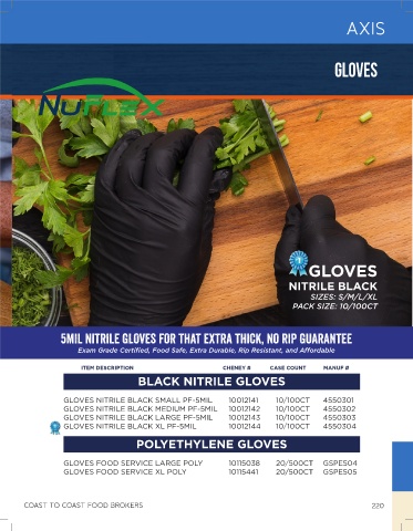 GLOVES NITRILE BLACK XL PF-5MIL 10012144 10/100CT 4550304